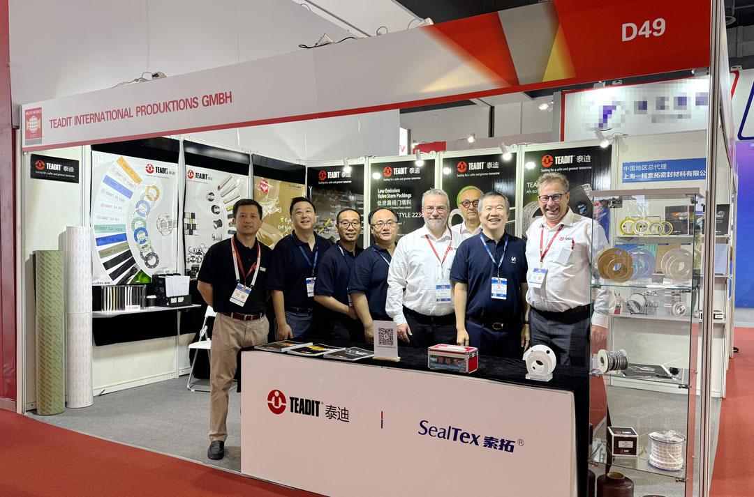 本次展會展出了帶有TEADIT® TAGTM 標記的低逸散性可追溯盤根2848,以及API 622 測試平均泄漏率僅為2ppm、ISO 15848-1 密封級別A的2236盤根;多款膨體四氟和改性四氟材料,例如:24SH膨體四氟,TF1570\TF1580\TF1590改性四氟,以及各種符合BAM氧氣測試、PFAS Free,適用于超低溫工況、低泄漏等要求的密封產品。